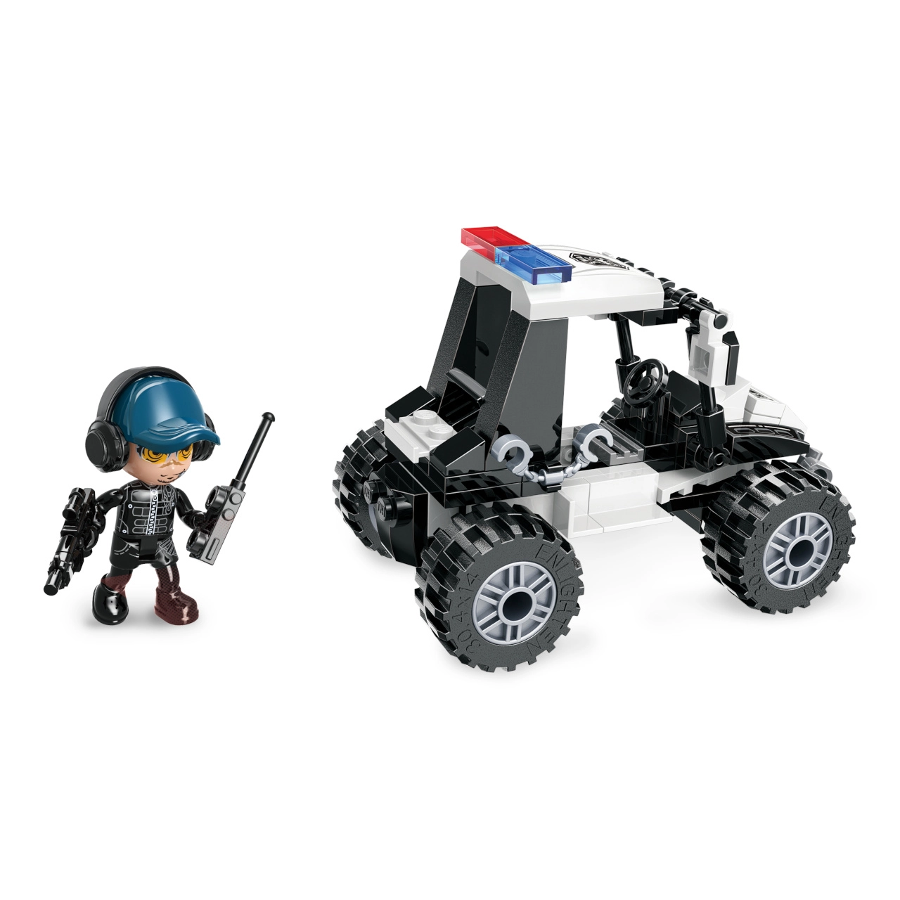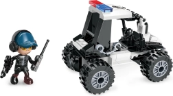 Dans la boîte, vous trouverez : 98 pièces et une figurine de policier. Une excellente opportunité pour les enfants d’exercer leur créativité et leurs compétences techniques.