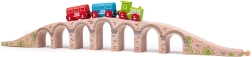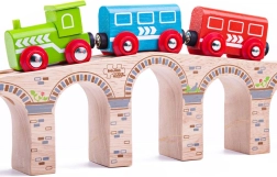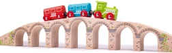 Le pont BIGJIGS RAIL ajoute une hauteur et une longueur impressionnantes à votre circuit. Grâce à sa construction en bois robuste et à ses raccords lisses, les petits trains roulent en douceur, tandis que les arches offrent suffisamment d’espace même pour les charges hautes. Une décoration élégante rappelant la maçonnerie en pierre donne au set un aspect réaliste.