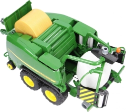 La presse combinée à balles rondes JOHN DEERE reproduit fidèlement les machines agricoles réelles et complètera à merveille toute ferme pour enfants. À l’échelle 1:16, elle offre des fonctions qui agissent réellement pendant la conduite – du ramasseur rotatif à la trappe ouvrante pour insérer facilement la balle.