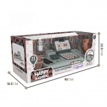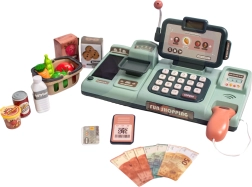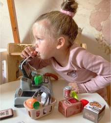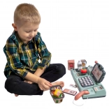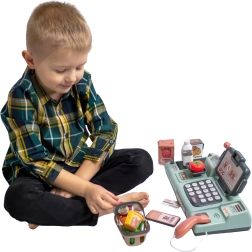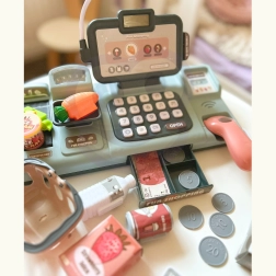 La caisse comprend un terminal, permettant à l'enfant de réaliser des paiements en espèces, par carte ou smartphone, comme les adultes au magasin. Une balance intégrée et un tapis roulant mobile permettent à l'enfant de s'organiser et de jouer le rôle réel de vendeur.3c/p>