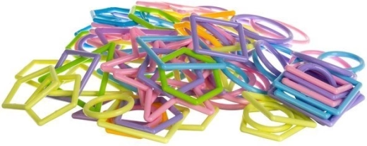 Le kit contient des éléments dans 6 couleurs différentes : orange, bleu, turquoise, jaune, rose et violet. Cela permet de créer des installations spatiales avec une palette de couleurs unique.