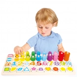 Jeu en bois multifonctionnel pour un apprentissage créatif et amusant. Idéal pour la reconnaissance des chiffres, des formes, des couleurs et le développement de la motricité fine.