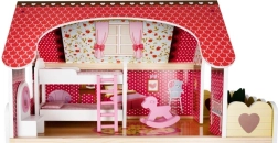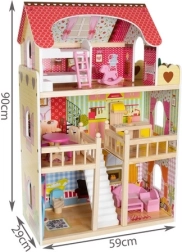La maison atteint une hauteur de 90 cm, ce qui en fait l'une des plus grandes du marché. Elle est fabriquée en bois massif, garantissant stabilité et sécurité lors du jeu.
