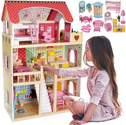 La maison de poupées en bois est un environnement de jeu parfait pour vos enfants. Avec sa hauteur de 90 cm, c'est l'un des plus grands modèles du marché, idéal pour jouer même pour les enfants plus âgés. La construction en bois de qualité assure stabilité et sécurité, évitant tout renversement pendant le jeu.