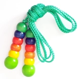 Corde à sauter classique et multicolore HESS avec poignées en bois pour enfants à partir de 3 ans. Grâce à sa longueur réglable de 2,3 m, elle grandit avec l'enfant, favorise le développement de la motricité et de la coordination et est fabriquée en bois écologique avec des peintures résistantes et sûres.