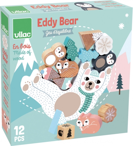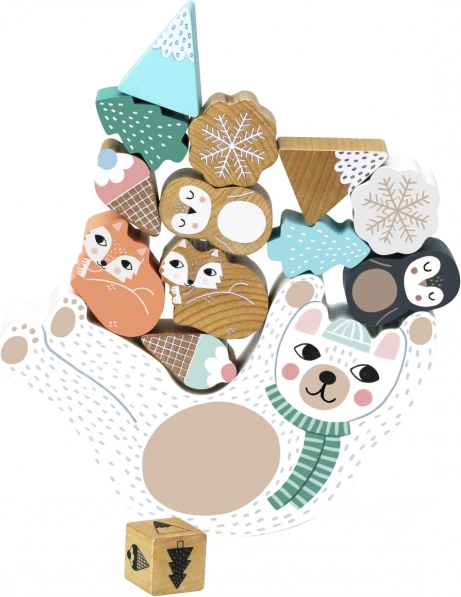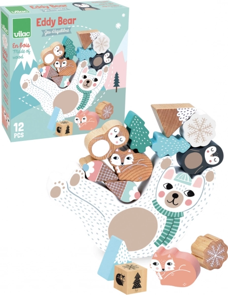 Adorable jeu d’équilibre en bois avec l’ourson Eddy qui développe la motricité fine, la patience et la coordination. Lancez le dé et, selon la couleur, placez sur le ventre de l’ourson des flocons de neige, des renards polaires, des manchots, des montagnes ou des glaces. Celui qui maintient la tour le plus longtemps gagne ! Fabrication écologique, illustré par Michelle Carlslund.