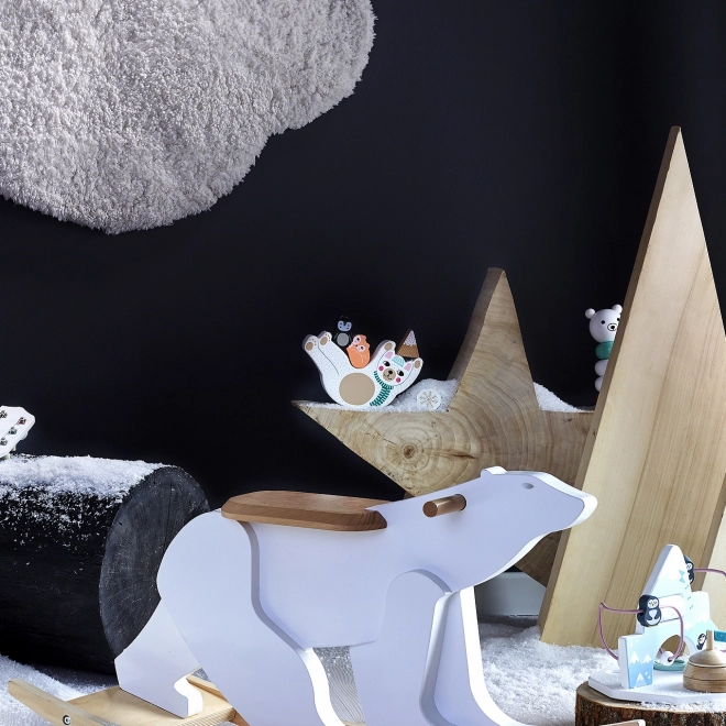Les enfants empilent des animaux, des flocons et des formes sur l’ourson qui se balance et apprennent à équilibrer chaque pièce avec délicatesse.