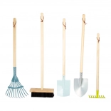 bêche, pelle, petite pelle, râteau, balai, petit râteau, petite bêche, seau/outil