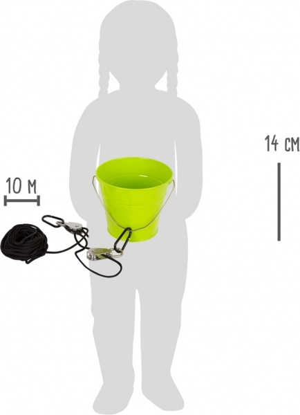 Découvrez une manière astucieuse d’aider les enfants à soulever des objets – le palan small foot avec corde solide et seau en métal résistant. Grâce à l’avantage mécanique des poulies, les enfants transportent facilement et en toute sécurité la « charge » vers le haut et vers le bas, sans devoir grimper sans cesse. Un excellent jouet pour la maisonnette de jardin, les structures d’escalade et la cabane dans les arbres, qui développe la de dextérité, la pensée logique et la compréhension du principe du palan.
