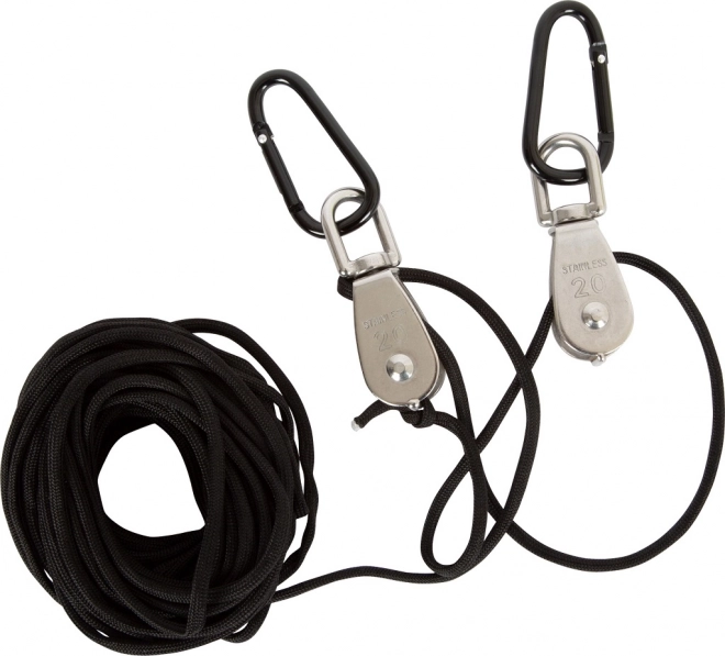 La corde longue et solide permet de lever et d’abaisser la charge confortablement à une distance sûre, idéale pour les maisonnettes et les structures d’escalade.