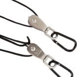 Des mousquetons pratiques permettent une fixation rapide à une poutre, un crochet ou un ancrage provisoire – sans outils, en un instant.