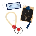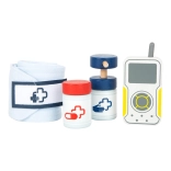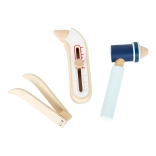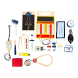 Ce sac à dos de secouriste est idéal pour le jeu de rôle de docteur. À l’intérieur, vous trouverez des instruments en bois tels qu’un stéthoscope, un thermomètre, un otoscope avec loupe et même un défibrillateur. Les enfants peuvent apprendre à reconnaître le matériel médical et à simuler des procédures de secours.
