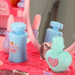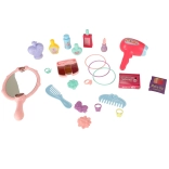 Inclus : peignes, miroir, flacons, accessoires pour cheveux et d’autres éléments pour un jeu réaliste autour de la coiffure et du maquillage.