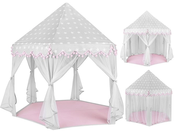 Créez pour les enfants un coin sûr pour se reposer et laisser libre cours à l’imagination. La tente possède un toit conique, 6 entrées ouvertes avec voilages clairs et respirants, et un design gris‑rose étoilé qui s’intègre à la chambre d’enfant comme à l’espace de jeu. Grâce à la structure légère à clips, vous l’assemblez en un rien de temps et la transportez ou rangez tout aussi facilement.