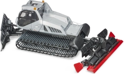 Le modèle possède une lame avant relevable et orientable, un tiller arrière avec rotor et des ailettes extérieures réglables, offrant une expérience authentique de pilotage d’une dameuse.