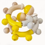 Hochet en bois Hess de couleur jaune, idéal pour le développement des compétences motrices de votre enfant. Fabriqué en bois de haute qualité, traité de manière écologique, il offre des possibilités créatives grâce à huit éléments montés sur un cordon élastique.