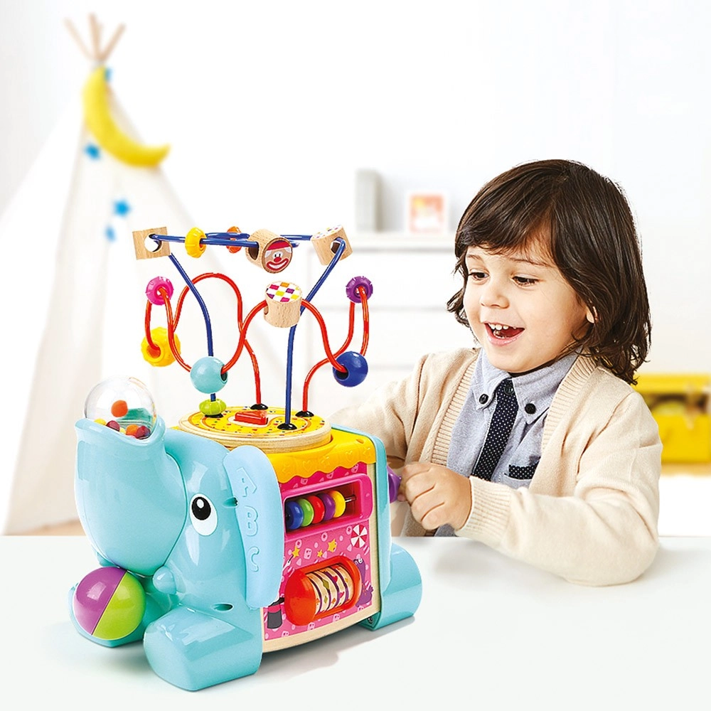 Ce cube d’activités multifonction en forme d’éléphant est un jouet éducatif idéal pour les tout-petits. Grâce à ses éléments colorés et à ses activités variées, les enfants entraînent naturellement la motricité fine, la perception spatiale et les compétences sensorielles. La partie supérieure comporte un labyrinthe de motricité avec des perles, tandis que les côtés présentent des engrenages, des pièces coulissantes et d’autres défis astucieux.