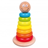 Ce jouet d’empilage en bois avec anneaux colorés favorise un apprentissage naturel par le jeu. Les enfants s’exercent au tri par taille, à la reconnaissance des couleurs et entraînent leur dextérité en enfilant les anneaux sur la tige. Le jouet possède une surface lisse et une base stable pour un jeu en toute sécurité.