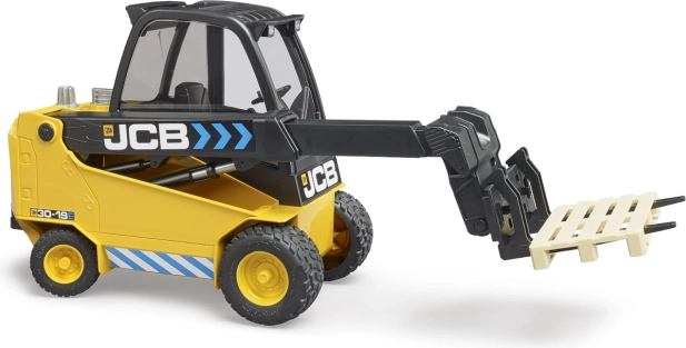 Découvrez les détails et fonctionnalités du modèle de chariot élévateur JCB Teletruck de Bruder. Ce modèle est une réplique à l'échelle 1:16 et est entièrement fonctionnel, incluant :