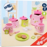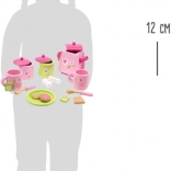 Offrez à vos enfants des heures de jeu infinies avec le magnifique service à thé en bois Rose. Le set comprend tout le nécessaire pour un goûter-thé parfait – une théière, des tasses avec couvercles, un sucrier, des sachets de thé, des cuillères, des morceaux de sucre et des biscuits. Toutes les pièces sont ornées de délicats motifs floraux qui apportent du charme à l’ensemble.