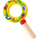 Un manche en bois lisse tient parfaitement dans la main de l’enfant et permet une préhension confortable et sûre lors des explorations.