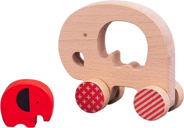 - Éléphant en bois sur roues + éléphanteau amovible