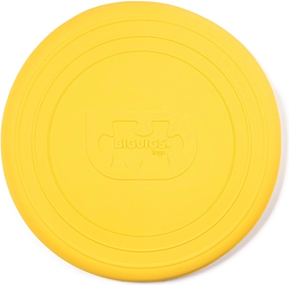 Frisbee de la marque Bigjigs Toys dans une teinte jaune vif est un accessoire résistant et flexible pour le sport et la détente. Fabriqué en silicone alimentaire non toxique, idéal pour la plage ou le jardin.