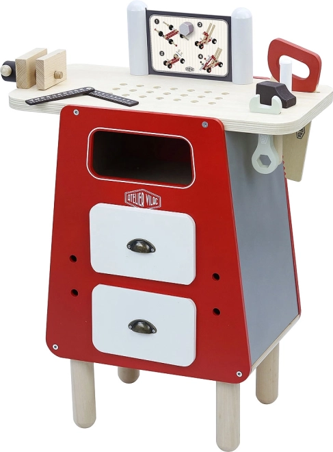 Vilac Mon établi est un jouet en bois original au look vintage qui permet aux enfants de créer et d’imiter les adultes à l’atelier. Grâce à son design sûr et à ses outils multifonctions, il stimule l’imagination et les compétences des enfants.
