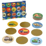 Magnifique mémo coloré pour les enfants d’âge préscolaire, qui aide à développer la reconnaissance des couleurs et la mémoire grâce à l’association d’engins de chantier. Chaque carte présente de jolies icônes de machines conduites par des animaux, fabriquée en papier recyclé et rangée dans une pochette pratique en polyester recyclé et résistant.