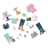 Contient plus de 25 pièces magnétiques pour s’habiller et jouer des rôles.