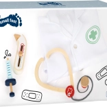 Le set de docteur pour enfants small foot apporte tout ce dont de jeunes médecins ont besoin pour leur premier cabinet. La blouse en taille 110 convient aux enfants mesurant 105–110 cm et, grâce à sa fermeture à pressions, elle s’enfile et se retire facilement. Les accessoires en bois sont agréables en main, durables et sûrs pour les jeux d’enfants.
