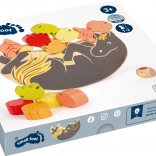 Le jeu d'équilibre en bois Small Foot offre un divertissement fantastique pour les enfants et les adultes. Les règles sont simples - le lancer de dé détermine quelle pomme colorée vous placez sur le cheval comme prochaine. Pour un jeu plus simple, jouez sans le dé. Ce jeu est idéal pour les enfants à partir de 3 ans et est conçu sur le thème de la ferme avec des chevaux et des animaux.