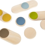 Pierres d'équilibre réversibles de la marque petit pied en bois massif avec hémisphères en mousse résistante aident les enfants à développer l'équilibre et la coordination. Elles encouragent de manière ludique la confiance en leurs propres capacités.