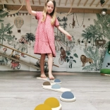 Transformez la chambre des enfants en terre d'aventure en quelques secondes avec ces pierres d'équilibre Adventure. Elles sont fabriquées en bois massif et en hémisphères en caoutchouc, qui changent de position sur chaque pièce pour augmenter la difficulté. Vous pouvez utiliser l'ensemble complet ou seulement certaines de ses parties et les combiner facilement avec d'autres produits de la gamme Adventure pour créer un parcours d'obstacles.