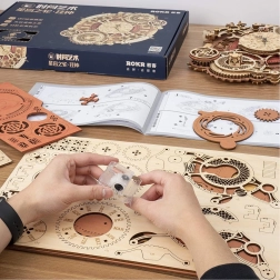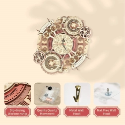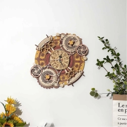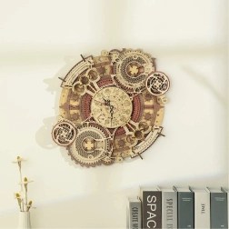 Découvrez l'art de l'horlogerie avec notre puzzle mécanique 3D en bois. Ce modèle se distingue par sa complexité et sa fabrication précise, qui attire l'attention de tous les passionnés de bricolage et de design steampunk. Idéal pour être suspendu au mur, ce modèle offre une utilisation esthétique et fonctionnelle, grâce à une horloge alimentée par électricité et un calendrier décoratif.