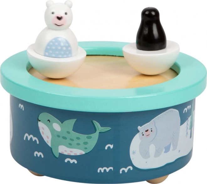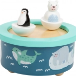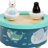 Les figurines de l’ours polaire et du manchot se déplacent au rythme de la mélodie, offrant une expérience à la fois visuelle et acoustique.