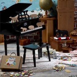 Grâce à la valisette en carton robuste et aux belles pièces en bois, le jeu est idéal à la maison comme en voyage. Des règles simples impliquent toute la famille et les enfants exercent de manière ludique leur concentration et leur vocabulaire.