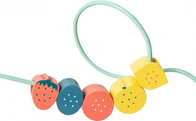Des perles colorées en forme de fruits sur un fil flexible stimulent la motricité fine et la coordination des mouvements lors du jeu quotidien.