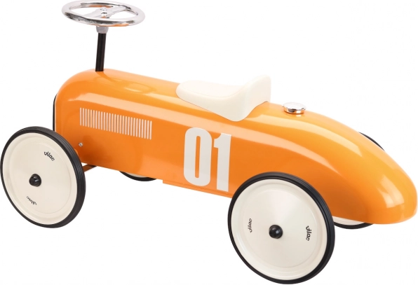 Une draisienne pour enfants au style vintage de course ravira les petits pilotes dès 18 mois. Elle possède une structure entièrement métallique, des roues silencieuses avec bande de roulement en caoutchouc, une direction précise par volant et une capacité de charge de 20 kg. La couleur orange métallisée et la selle blanche apportent du charme au jeu, à la maison comme en extérieur.