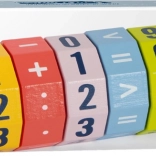 Cette aide pédagogique en bois de qualité allie un design visuellement attrayant à un apprentissage pratique. Six segments rotatifs avec chiffres et symboles mathématiques permettent aux enfants de composer leurs propres exercices d’addition, soustraction, multiplication et division. En tournant les anneaux, ils créent des équations qui les motivent à résoudre et renforcent naturellement leur numératie.