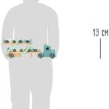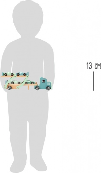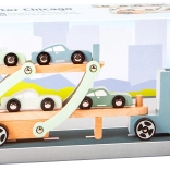 Le set comprend un camion avec remorque et au total quatre petites voitures de sport. Le jeu développe la coordination œil-main, la motricité fine et le récit créatif. Grâce à des matériaux de qualité et à des bords soigneusement polis, le jouet convient aux enfants dès 3 ans.
