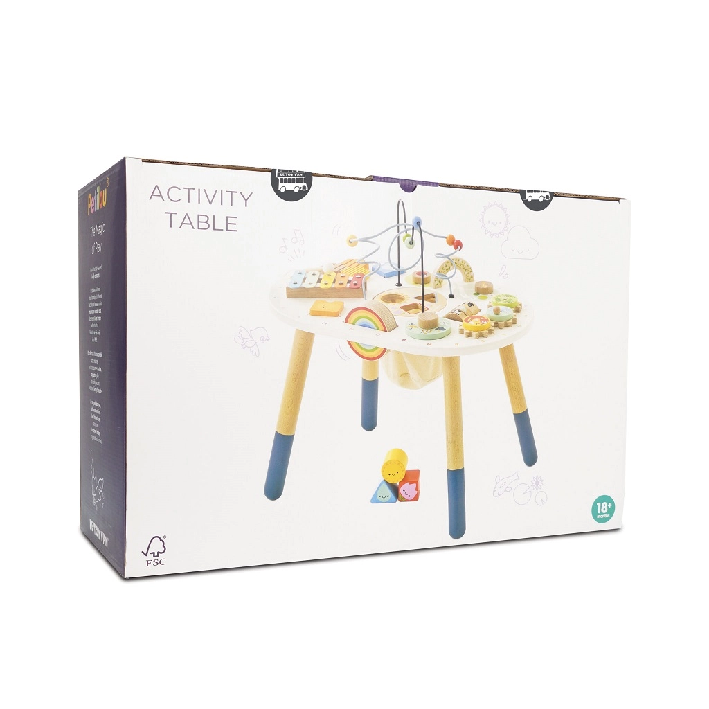 Découvrez une table d’activités en bois de qualité pour tout-petits de la collection LE TOY VAN Petilou, qui favorise la motricité fine, le développement sensoriel et le jeu créatif. Elle propose un labyrinthe de perles, un jeu d’encastrement, un xylophone, des engrenages et d’autres éléments. Fabriquée en bois certifié FSC® et peinte avec des peintures non toxiques pour un amusement sûr et durable.