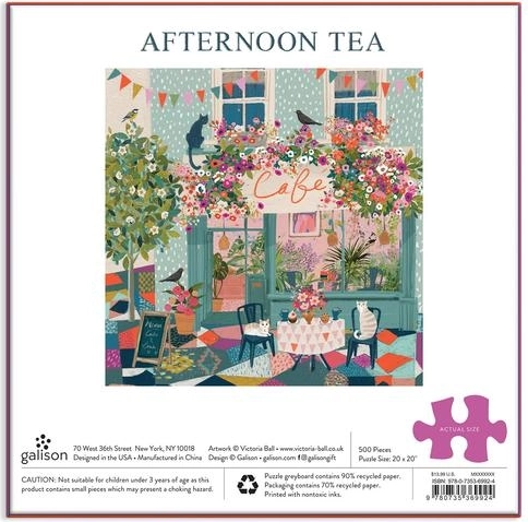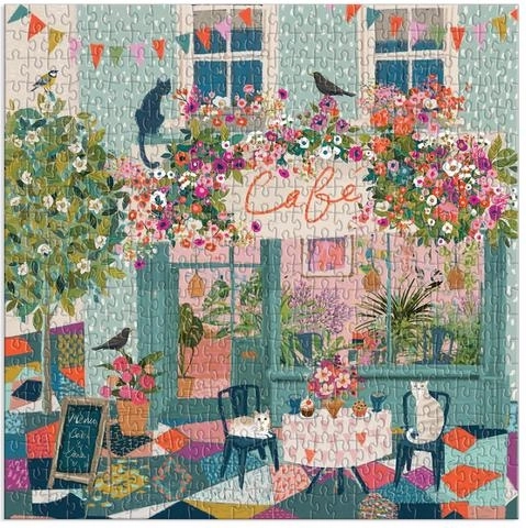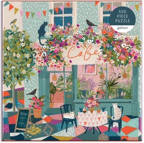 Découvrez l’univers charmant de GALISON avec le motif « Thé de l’après-midi au café ». L’illustration de la célèbre artiste Victoria Ball capture l’ambiance chaleureuse d’un café urbain orné de plantes en fleurs, où jouent d’adorables chats et virevoltent des oiseaux. Le puzzle est rangé dans une boîte rigide à finition mate, idéale aussi comme cadeau.