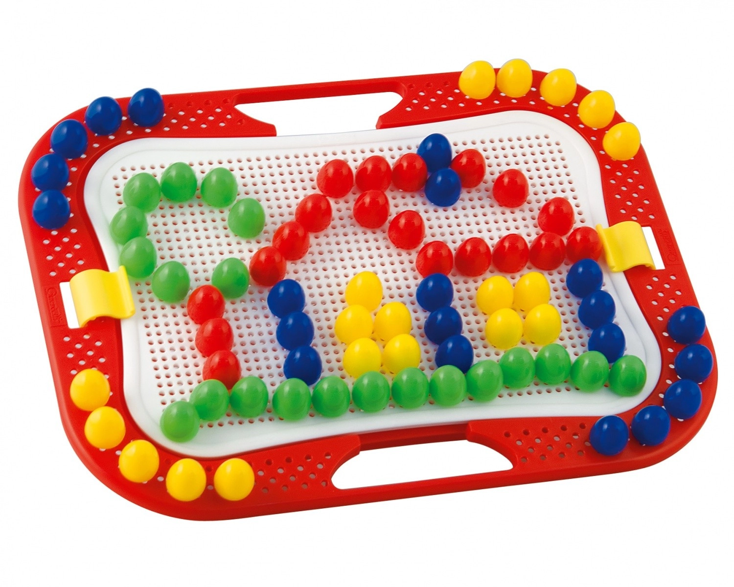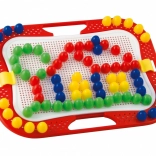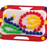 Ce set de mosaïque créatif offre aux enfants dès 3 ans d’innombrables possibilités pour composer des images et des motifs. De grandes chevilles, faciles à tenir, avec une tête bombée lisse, s’insèrent dans les trous d’une plaque perforée robuste montée dans un cadre solide avec poignées. Le jeu stimule l’imagination, développe la coordination œil-main et renforce la concentration.