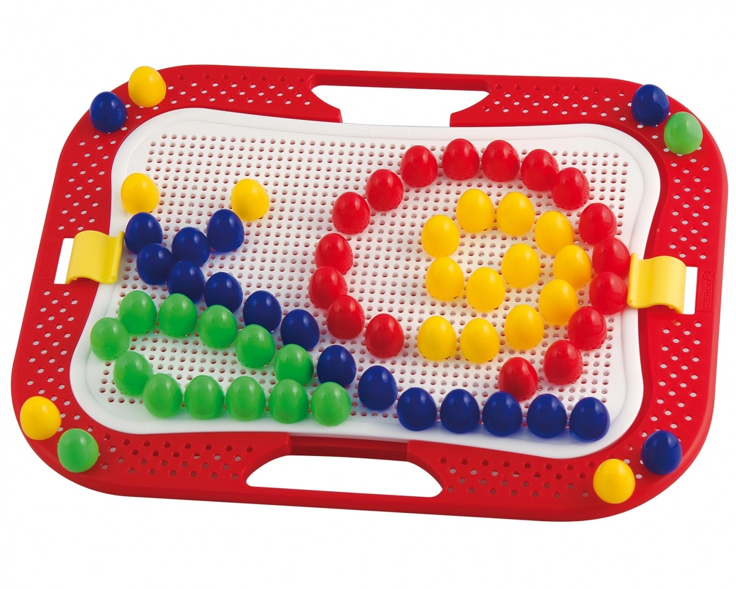 Des chevilles en forme de dôme, faciles à saisir et aux couleurs vives, favorisent le développement de la motricité fine ainsi que l’apprentissage des couleurs et des formes.