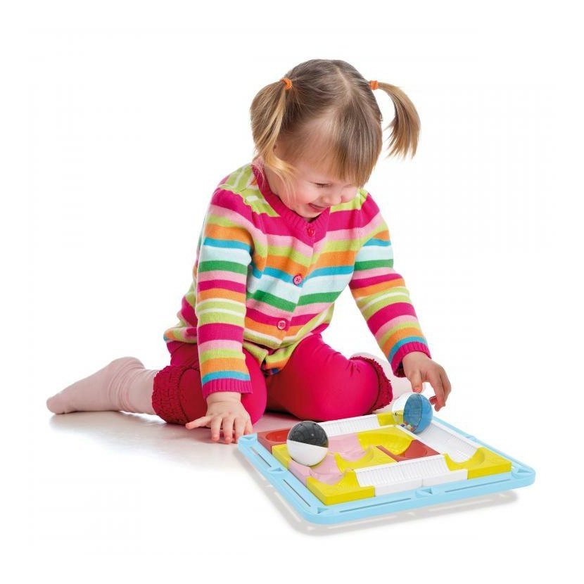 Guider les billes à travers les obstacles améliore la prise, la précision des mouvements et la coordination œil–main chez les plus petits.