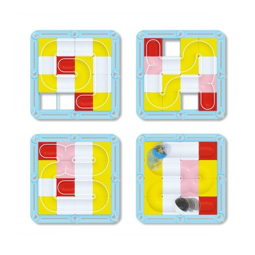 Assemblez facilement les blocs modulaires dans le cadre et créez à chaque fois un nouveau parcours pour les billes – un jeu créatif sans limites.
