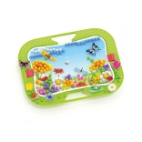 Crée ta propre jardin fleuri avec des chevilles ! Les chevilles classiques Quercetti en version colorée représentant le monde de la nature. Le set comprend des chevilles de différentes couleurs et diamètres, dont l’insertion permet de composer diverses scènes de paysage, ainsi que de nombreux autocollants et figurines de papillons, libellules, coccinelles et d’autres créatures pour peupler ton univers naturel. Contenu de la boîte : 1 plaque perforée 28 × 20 cm, 2 images modèles, 300 chevilles en 6 couleurs différentes, 16 figurines, 1 socle avec support, 1 stylo poinçon en bois. Principales caractéristiques : développe la motricité fine, la créativité et l’imagination, contient 316 boutons, pour enfants à partir de 3 ans.