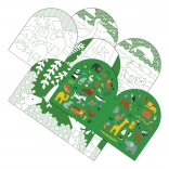 Découvrez un kit ludique pour les petits artistes : un livre de coloriage avec autocollants sur le thème des animaux sauvages de la marque Petit Collage. Après avoir colorié, les enfants peuvent décorer chaque scène avec des autocollants et créer leurs propres histoires. Le dessin et le collage développent naturellement la concentration, la créativité et la motricité fine.