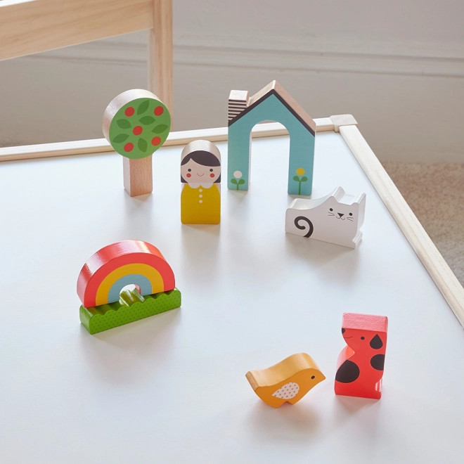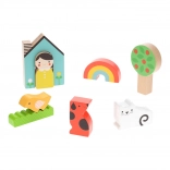 Cet ensemble coloré permet aux enfants de créer des scènes domestiques ou de construire comme un puzzle. Les pièces sont conçues pour bien tenir dans les mains des enfants et sont fabriquées à partir de bois 100% FSC®, garantissant un respect de la nature.